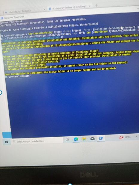 Per instalar Chocolatey a les MV windows tindrem que posar aquests comandos a powershell amb permisos d’administrador: